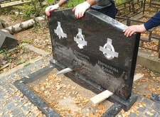 Приступаем к монтажу памятника. Привезли уже готовое надгробье, водрузили его на сделанное заранее основание, укрепили.