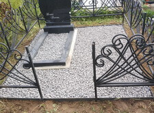 В данном случае мы приступили к работе на уже существующей могиле, на который были памятник с цветником и оградка. Клиенту мешала трава на участке, поэтому было принято решение отсыпать территорию каменной крошкой.